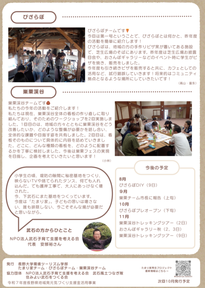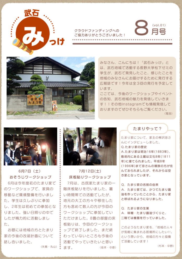 また、プロジェクトメンバーのゼミ生が編集した地域通信「武石みっけ」8月号も完成しました!