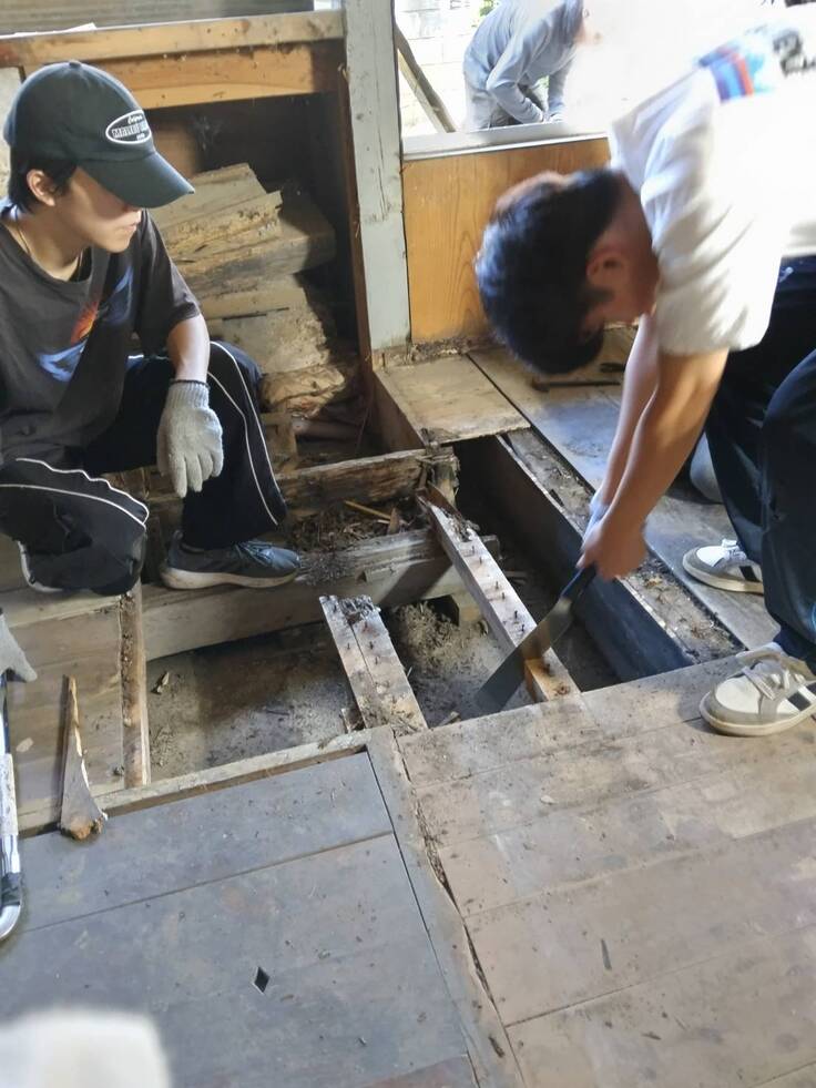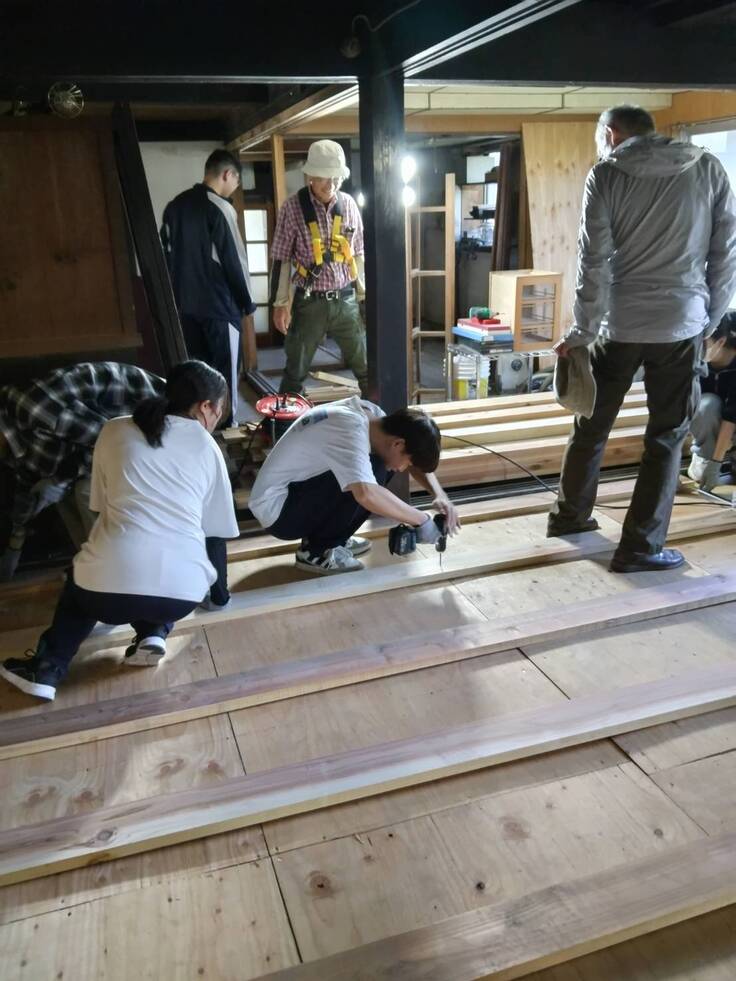 9月28日(日)、地域の方々と松下ゼミ生が力を合わせ、床板貼り&草刈り・草取りを行いました。少しずつ古民家が整い、みんなが集える場所へと近づいています。
