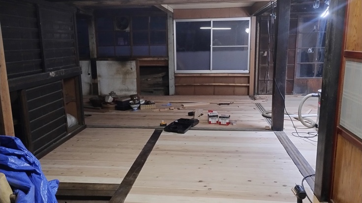 11月2・3日開催予定の「おさんぽギャラリー秋」までに、なんとか1階の床板が貼りが終わりました!