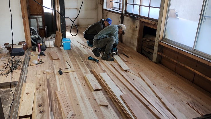 毎回、床板貼りの報告ばかりになりますが、今期のメイン事業は、みんなで床板貼りに挑戦ですので、今しばらくお付き合いください。