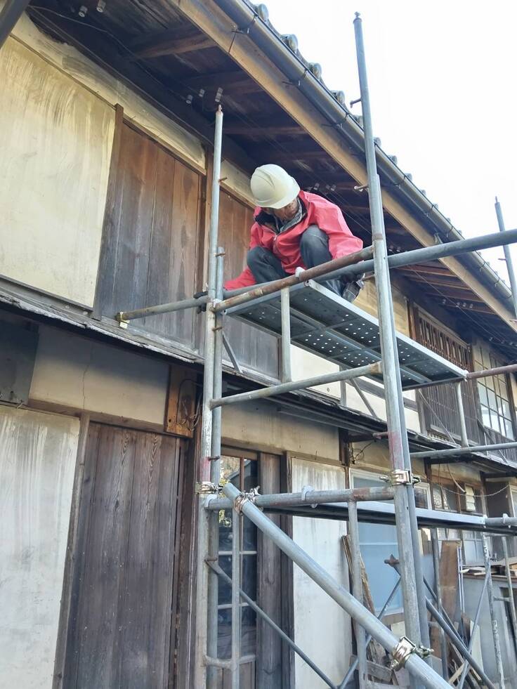 そして本日、床板材を2階へ運び上げるための足場が組まれました。