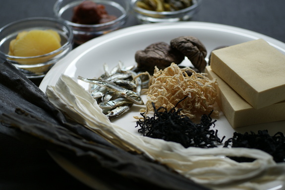 (おなじみの日本の乾物や漬物です。海のものから山のもの、色々あります。)