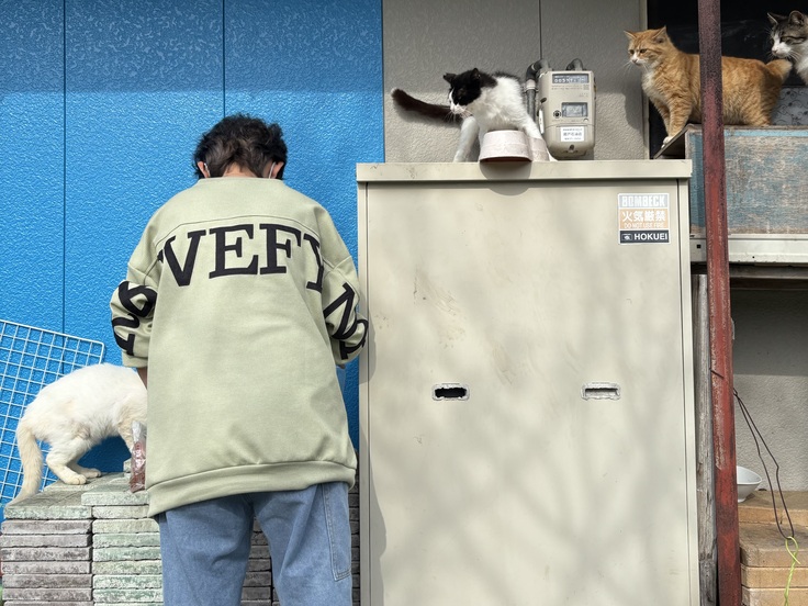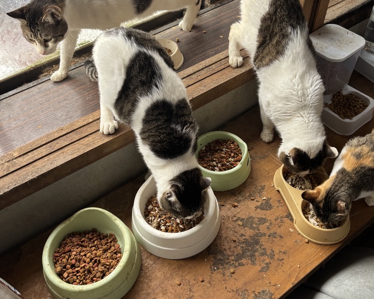 お世話を頼まれてボランティアで仕事と関係なくあの子達の命を守るためお世話に通い始めて今にいたります。