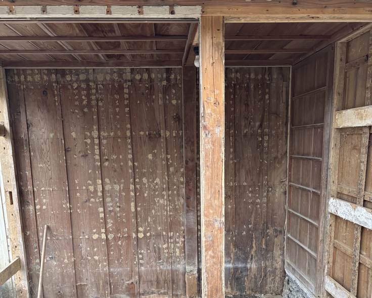 古民家の裏なんですが、訪問先の犬の家を