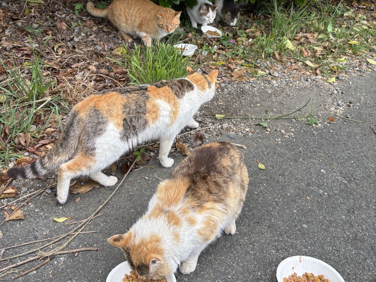 地域猫達ご飯モリモリ食べて、過酷な環境を