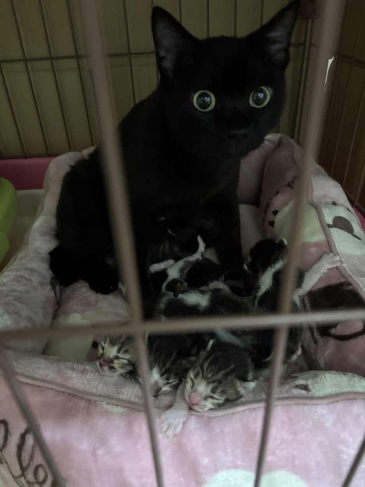 仔猫達も黒ちゃんも元気で新しい寝床は