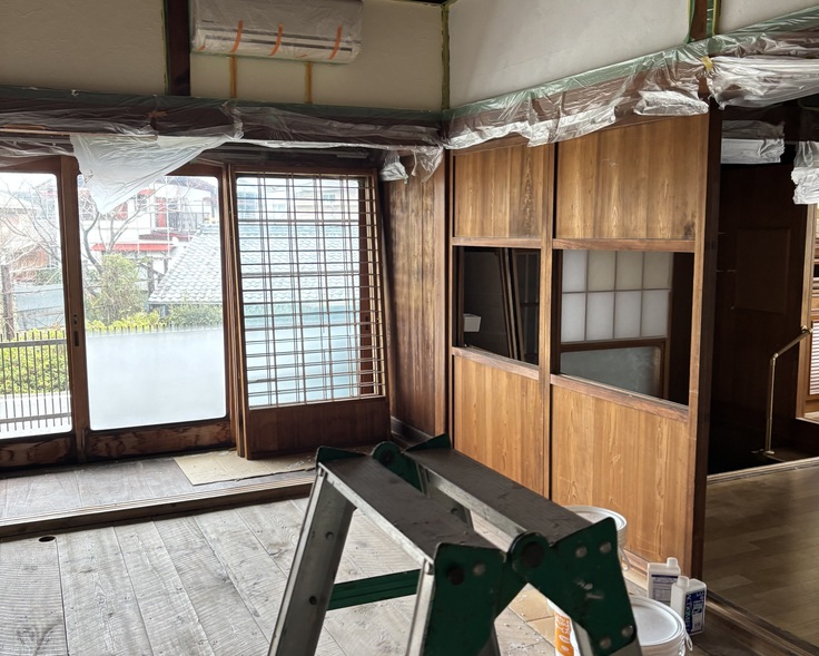 灰色のどよんだ土壁を漆喰で、明るい色へと