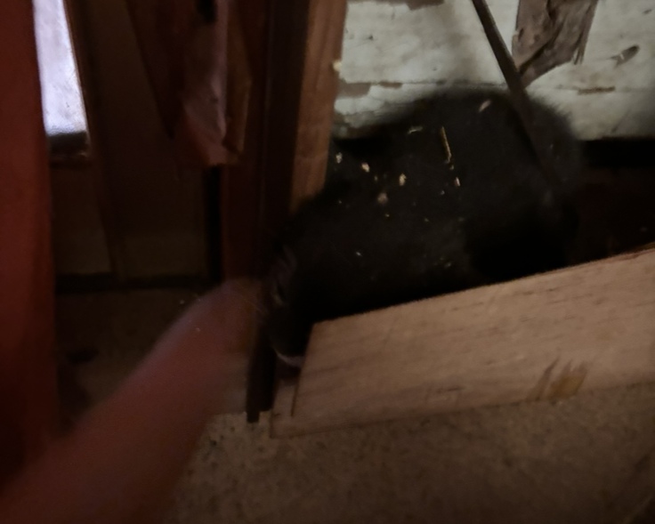 レスキュー壁に仔猫が挟まって出れない状況でした💦お昼休憩に現場に部屋主さん、大家さんに許可もらい。壁をバールとトンカチで
