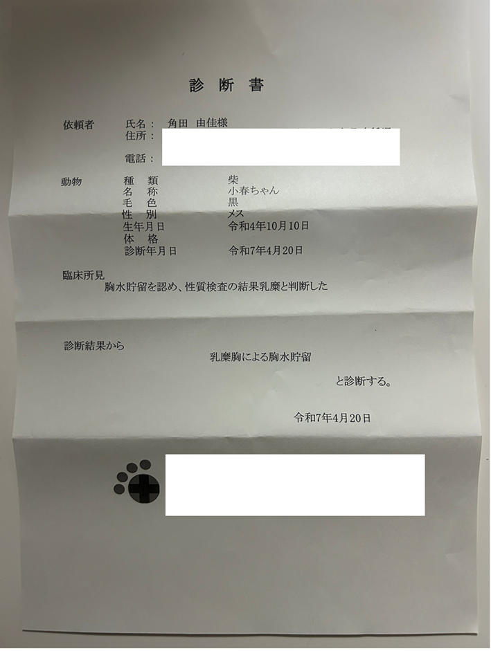難病「突発性乳び胸」を発症した愛犬「小春」の手術費用