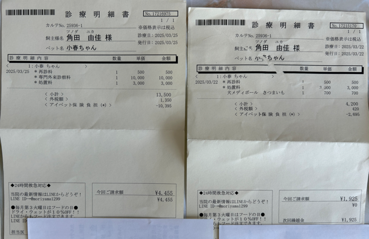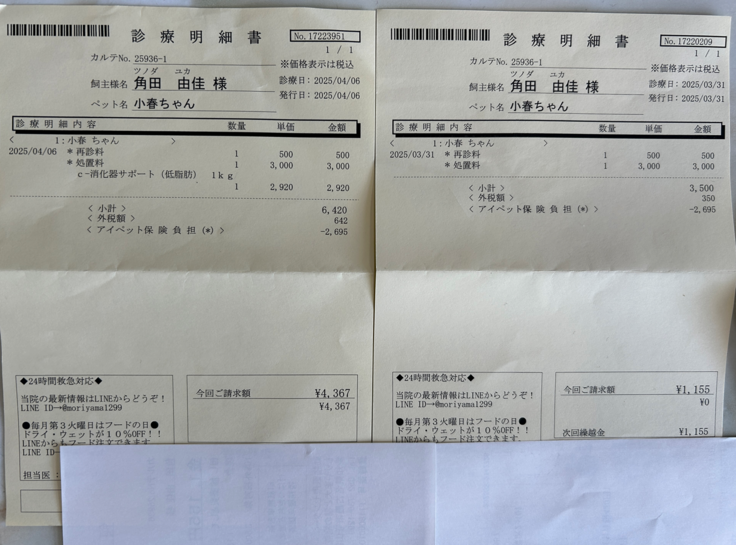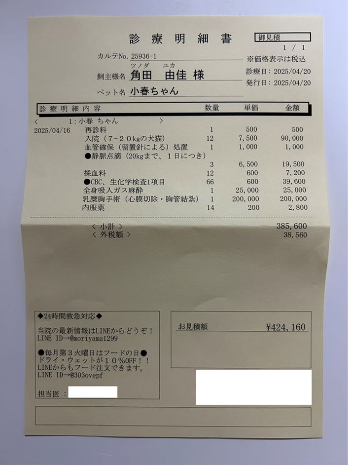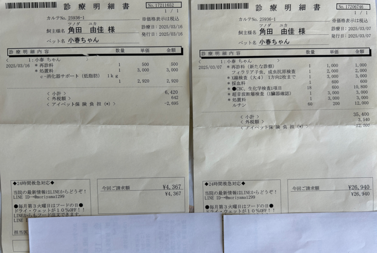 ▶︎ 4. 掲載している資料についてページ上に掲載している診断書や診療明細書などの資料は全て動物病院から掲載の許諾を得ております。