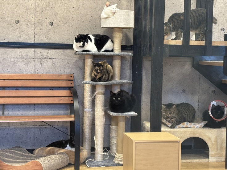 ・猫ちゃん達、本当に可愛かった!座ってるとすぐ膝にきてお昼寝してくれる。環境も整ってて衛生的でキレイ。ケンカもなく、みんな幸せそうだった。