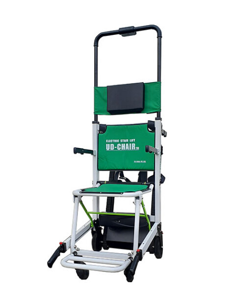 「UD CHAIR」とは、バッテリーで動くいす型の階段昇降機で、体重120Kgまでの方を1人でお運びすることができます。介護保険レンタルもされている商品ですので安全面は問題ないと考えております。