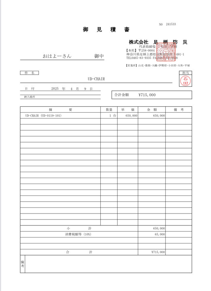 また、この商品を所持することで地震・災害時のエレベーターが停止した際の上層部から下層への避難や、津波や洪水時の垂直避難に対応することができ、今年民間救急事業者の認定を受ける弊社にとってより親和性があり、地域の皆様に安心して生活していただけるのではないかと考えております。
