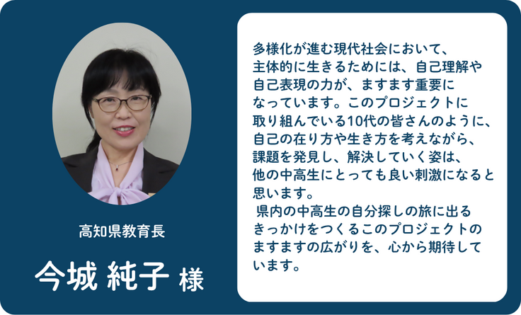 対象者:高知県内の中学1年生〜高校3年生(「もっと自分を知りたい!」「将来ビジョンを明確にしたい!」という方大歓迎☆彡)