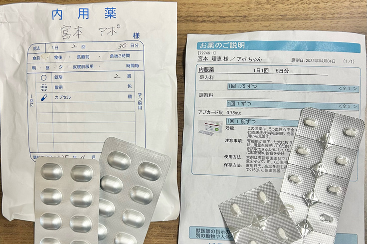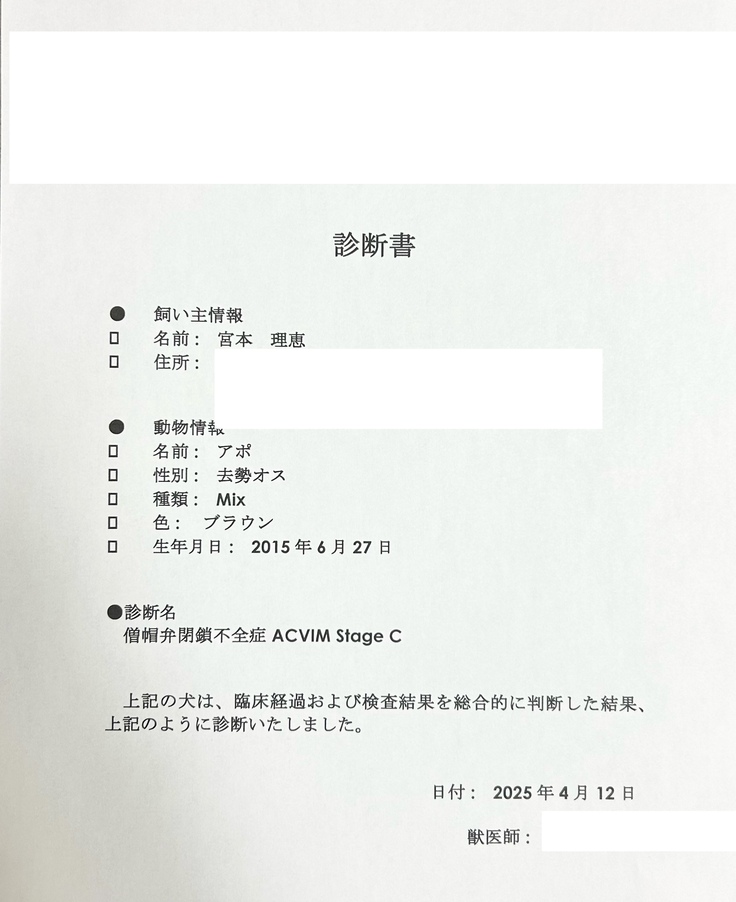 2022年10月、アポの心臓に雑音が見つかり、「僧帽弁閉鎖不全症」と診断されました。