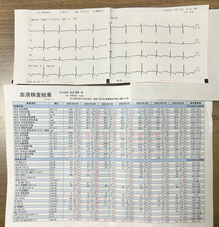 心電図でも不正脈なし、血液検査も基準値内になりました。