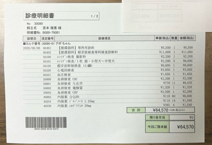 検査結果は、大きくなっていた心臓が小さくなり基準範囲内になりました。