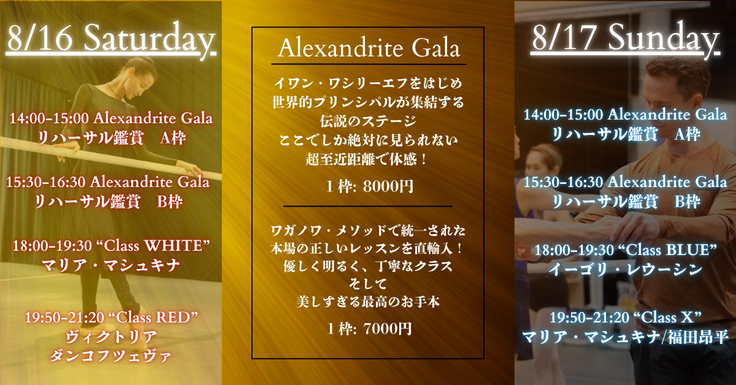 お盆の時期ではありますがここでしか見れないダンサー達、ロシアから直輸入のレッスンの難易度を調節し、サポートがしっかりとついた安心のレッスン、ワークショップで紡がれるバレエを楽しむ仲間たちとの交流…