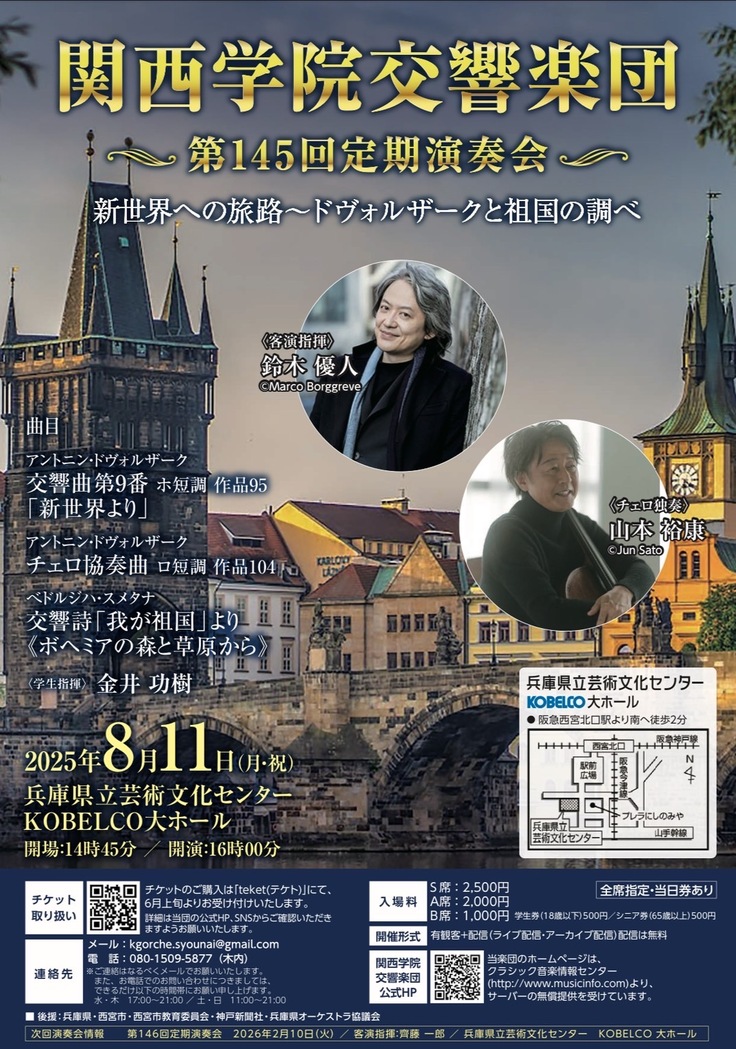 2025年8月11日に兵庫県立芸術文化センターにて行う、関西学院大学交響楽団第145回定期演奏会!
