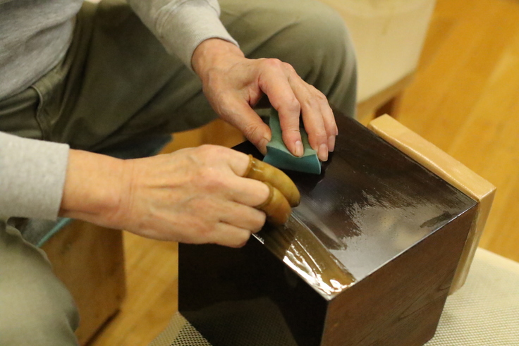 インターンシップ事業に参加した女性1名を仙台箪笥組合以外の仙台市内にて漆塗装事業者様に就職。令和6年度宮城県伝統的工芸品産業振興事業を活用し、仙台箪笥の漆職人伝統工芸士より漆塗り工程の新規従事者の技術習得のために行う事業を実施した。