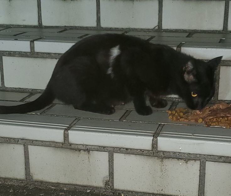 この黒猫ちゃん 初めて見る子。だんだんと温かくなってきたんで にゃん達の活動が 盛んになってきたように思います。この黒猫ちゃん