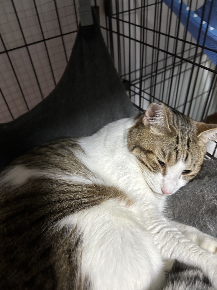 夜 帰宅後 様子見たら ハンモックで寝ていました。まだ 食欲はありません(>_<)