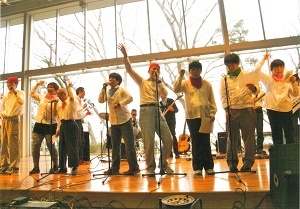 とびっきりレインボーズは、社会福祉法人進和学園を利用する音楽の好きな利用者ご本人とスタッフが集まり、平成元年に結成された音楽バンドです。今年で30年目になります。