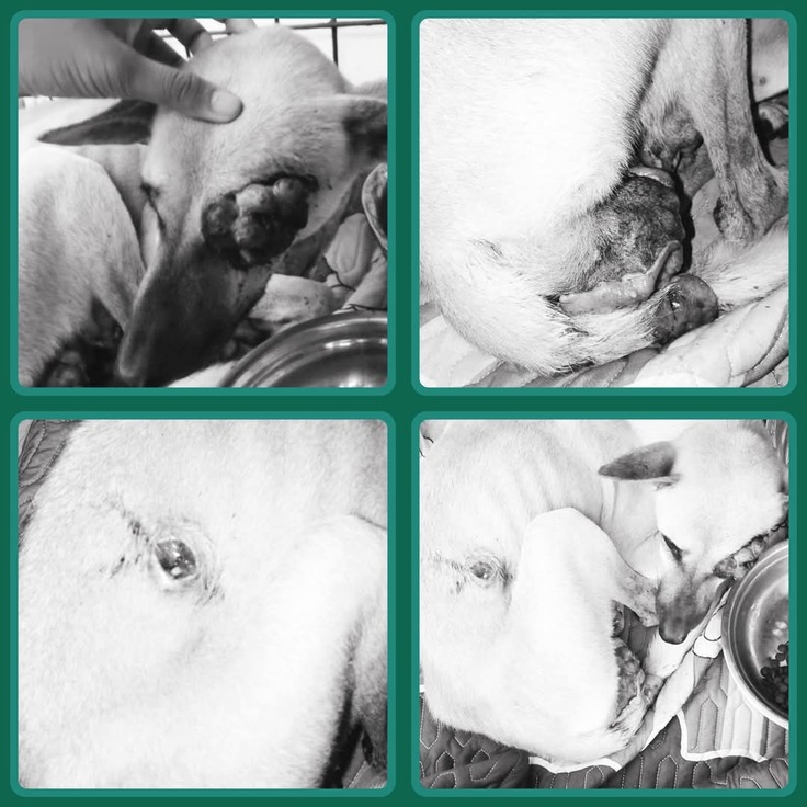 リーフィーは感染性の腫瘍であるTVT(可移植性性器腫瘍)が 目、足、しっぽ、乳房周辺、横腹部、などあちこちにできており、大変な治療となるだろうけれど、とても強い子だと信じて疑わない。