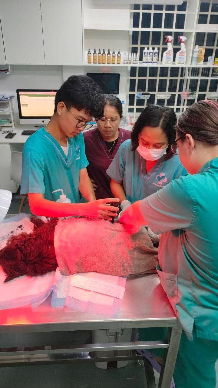 郊外に住む飼い主からの要請で、重症の「ピン」を急遽病院へ