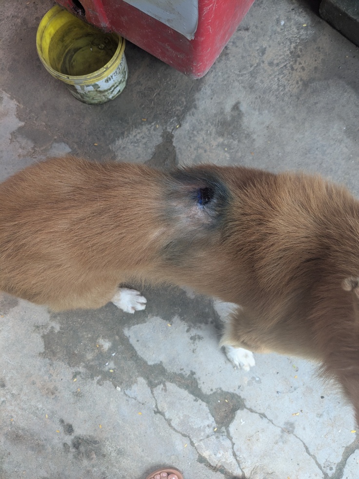 通りに住む「ドド」の面倒を見ていた飼い主から誰かに切られたと通報があってから、「ドド」の治療を続けてきました。まだ傷は完全に癒えていないので毎日スプレーしています。