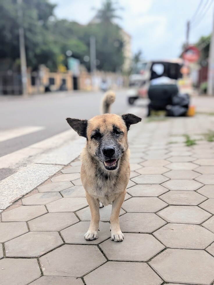 7月に、近くの家主が角を回ったところの家の犬といったのですが信用できず、今回確かめたら近くで朝まで寝ていました。息子さんもあたりの屋台で餌をもらっていると言ったのですがどうもあやしい。奥さんが私に犬を連れて行っていいよ、というので確かめたら、やっぱり食事をくれる人もいない野良犬だったのです。