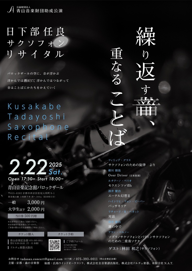 このたび、2025年9月に開催する「繰り返す音、重なることば 日下部任良サクソフォンリサイタル・東京公演」に向けて、クラウドファンディングに挑戦することにしました。