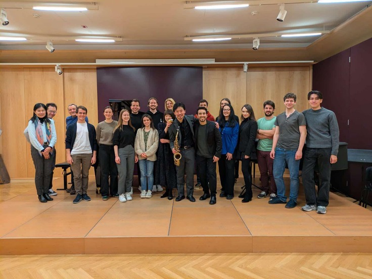 ウィーン国立音楽大学でのリサイタル後 受講生や共演者との集合写真(2025年3月 掲載許可を得ています)