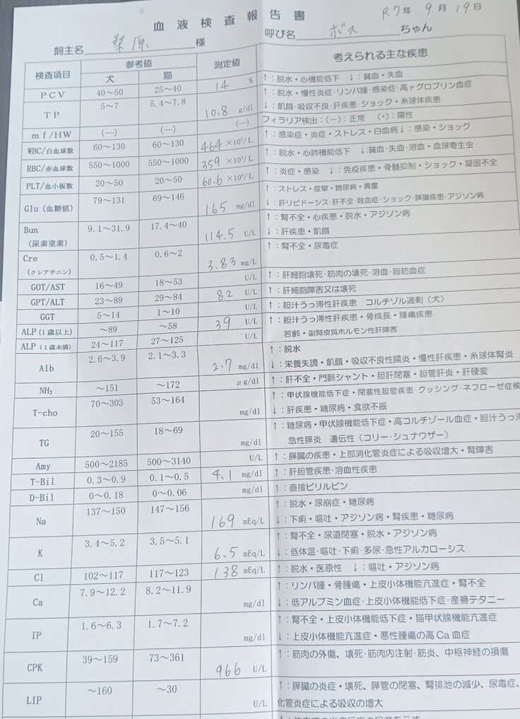 自分も腎臓病で去年に腎臓病で亡くしてますから数値を見れば手術していたらほぼ亡くなっていたと思います。