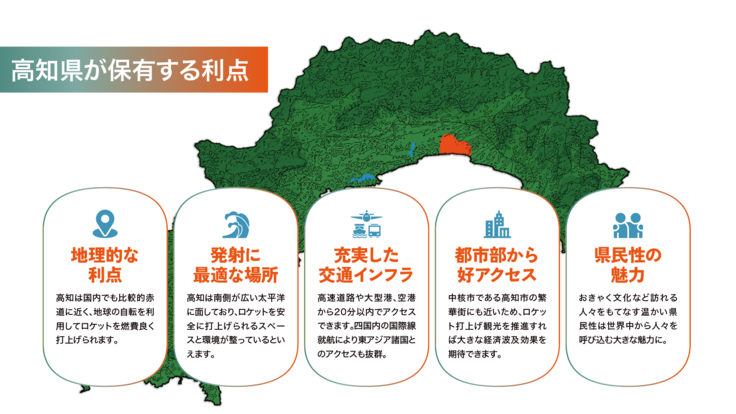 高知県は太平洋に面した地理的特性を活かせるスペースポートに最適なロケーションにあります。