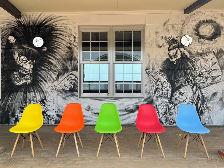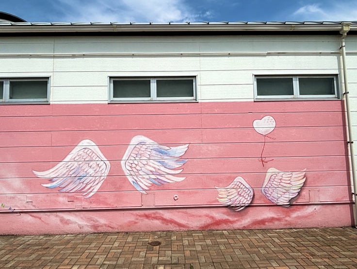 「日本一POPでアートな道の駅」をテーマに様々な壁画や、サクラ模様のポスト、天使の羽などPOPなイラストをはじめ、石見神楽の「鍾馗(しょうき)」のようなダイナミックな壁画は来館者の目を引きます。