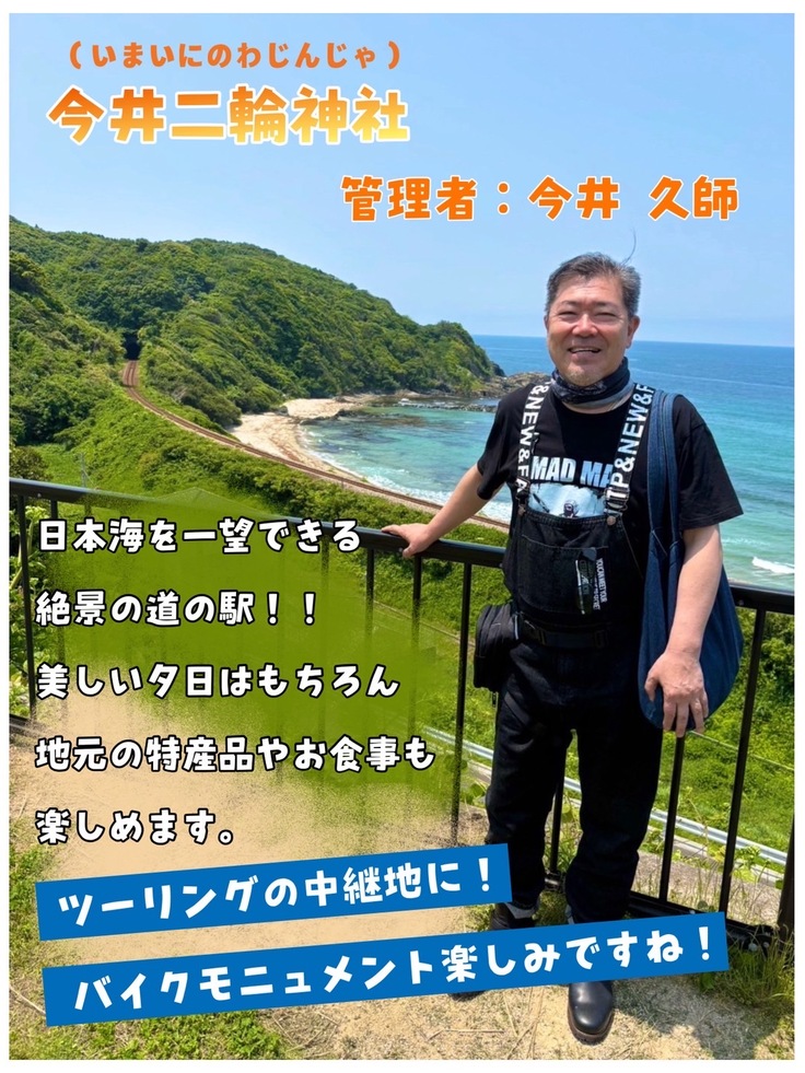 海岸沿いの眺めがいい山陰地区に県内、県外から山陰西部地区を目的地として数多くの二輪愛好家に訪れてもらい、山陰地区の地域経済の活性化を図ることを目的とし、旅の安全を祈願する場、交流の場として、バイク神社を整備し、当施設への観光客の呼び込みと周辺施設への周遊を図ります。