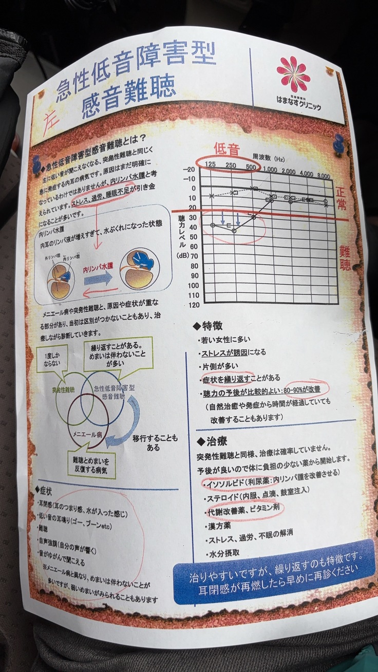 診断は「低音障害型感音難聴」。突発性難聴やメニエール病と近い、いわゆる“完治しにくい”病気だそうです。