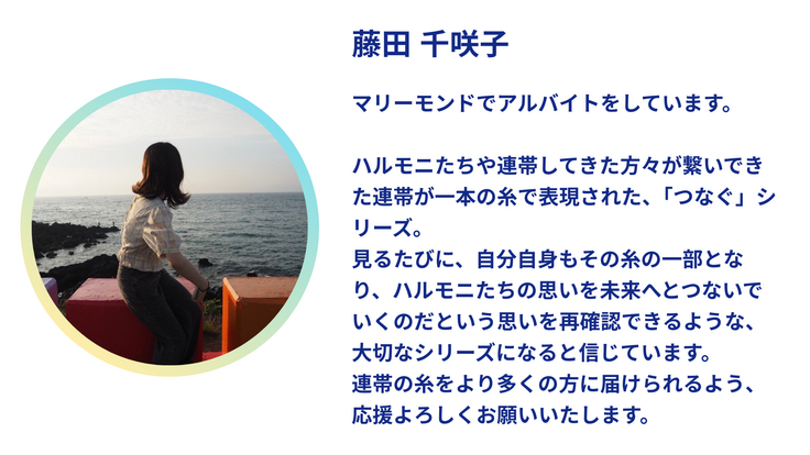 誰もが世界をつなぐ一員になれるのだと伝え、再び連帯の輪を広げていきたい。