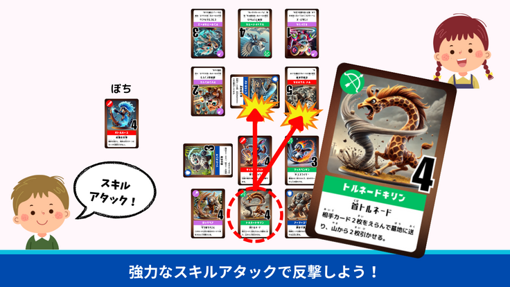 『みんバト(アニマルアタック)』は、放課後児童クラブでの異なる年齢の交流や非認知能力の育成を目的に開発されたカードゲームです。
