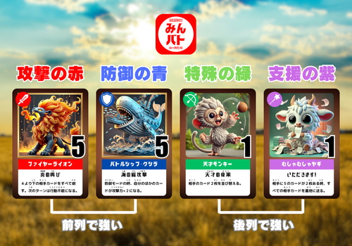 そしてついに、「みんなで遊べて、みんなが育つ」ことを目的としたオリジナルカードゲーム『みんバト(アニマルアタック)』が完成しました。