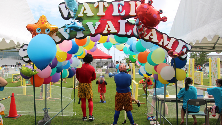 「Water Splash!」を初開催した2022年8月はコロナ禍の後半。様々な声がありましたが、夏祭りや学校行事など、子どもたちが地域と関わる機会が激減し、笑顔やふれあいが減り、孤立感を覚える子どもも少なくなかったときだからこそ、最大限の対策と安全管理をした上で開催することを決めました。当日は約1,000人の来場に加え、ボランティアスタッフとして地元中高生も50名以上集まり、全員が笑顔いっぱいの大盛況となりました。