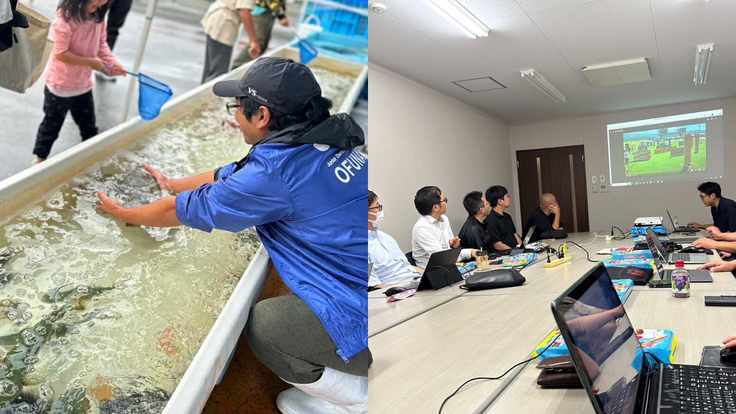 2025年度は理事長鎌田智のもと、「もっと+〜思い描く未来へ 共に創造しよう〜」をスローガンに掲げ、多様な職種のメンバー26名が大船渡を盛り上げるための活動をしています。セミナーや勉強会だけでなく、子ども向けにお魚タッチプールや大船渡湾クルーズを企画したり、地域の若者を集めた交流会なども行なってきました。また、2025年2月の大船渡大規模林野火災発災時は、東日本大震災の教訓から結んだ防災三者協定(大船渡市社会福祉協議会、おおふなと市民活動センター、大船渡JC)に基づき速やかに協議を始め、必要物資購入のための支援金募集や炊き出し活動などを行いました。