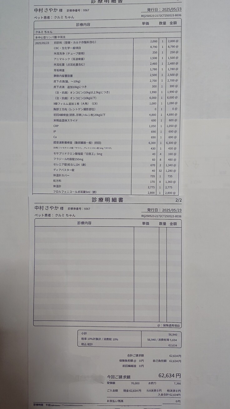 ページ上に記載している診断書や診療明細などの資料は全て動物病院からの掲載の許可を得ております。