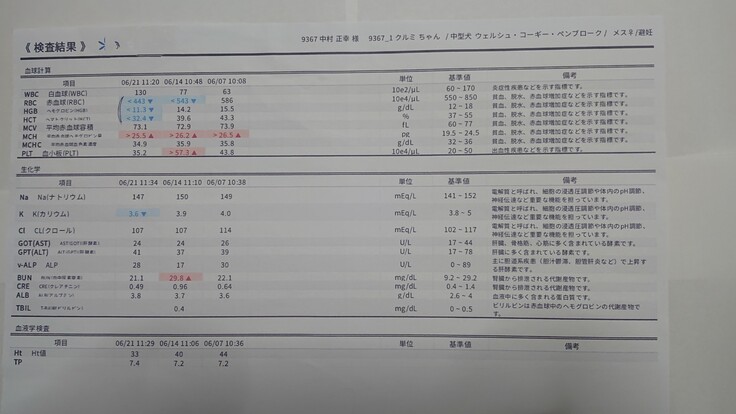 少し貧血気味という事で少しそれも様子をみないといけません。