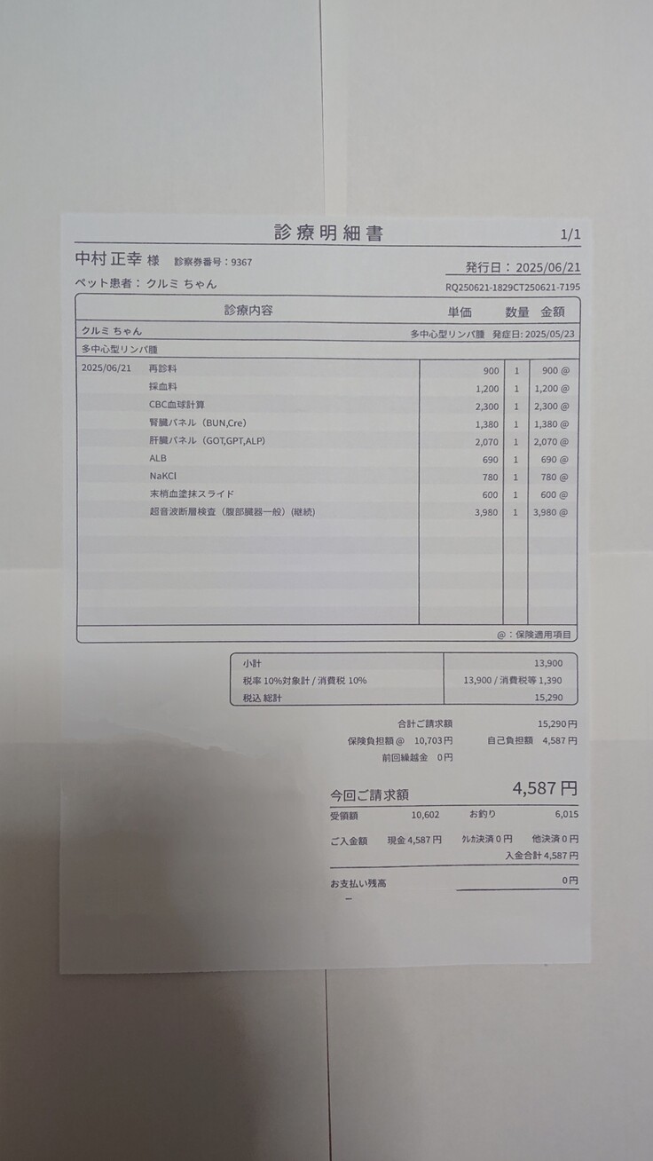 今回は抗がん剤の経過を見るためにもう1週間あけてみると言うことで検査と診察のみになりました!