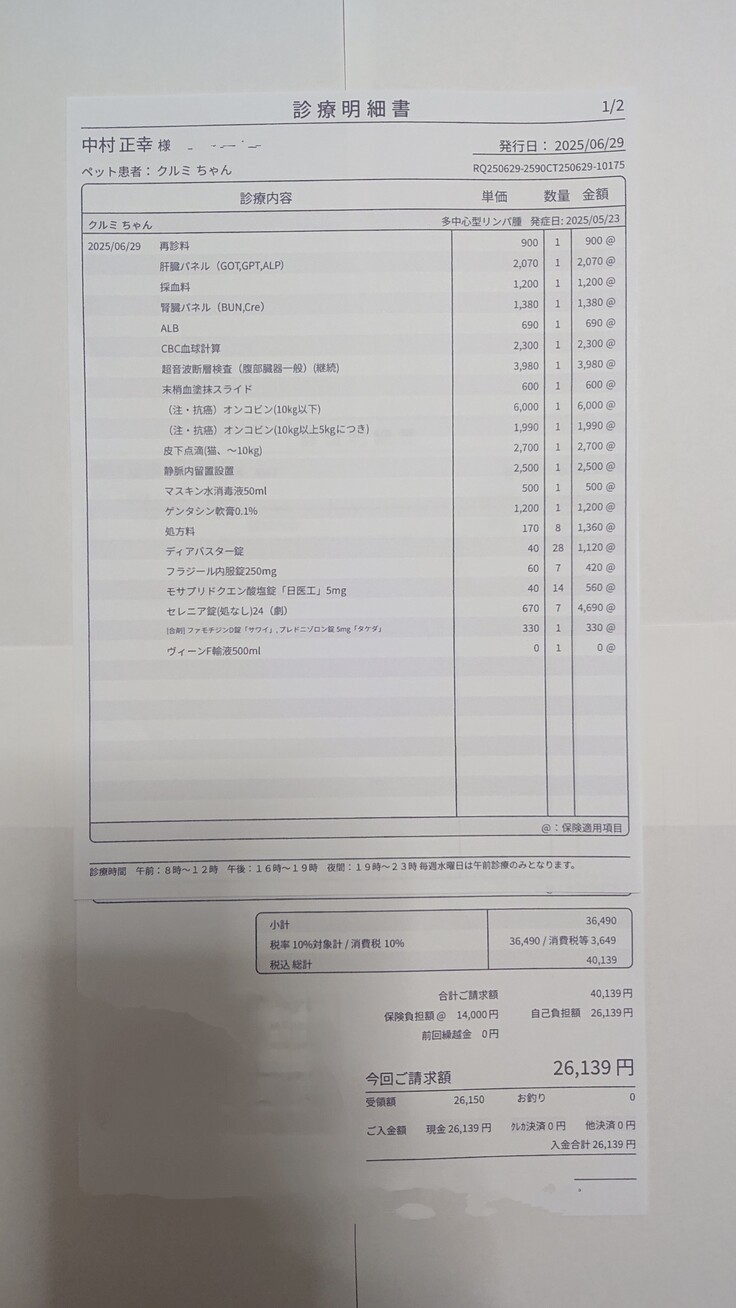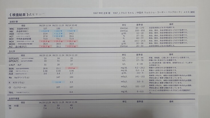 2週間あけての経過を見て、リンパ腫は小さくなってるとの事でひと安心したけど皮膚が荒れてきて今回はそれも一緒にみていただきました❗副作用で皮膚が荒れているわけではないと言われました😅何が原因なんだろう😅