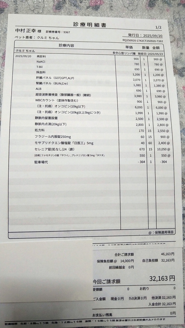 抗がん剤治療も後、1回、クルミ頑張れー!