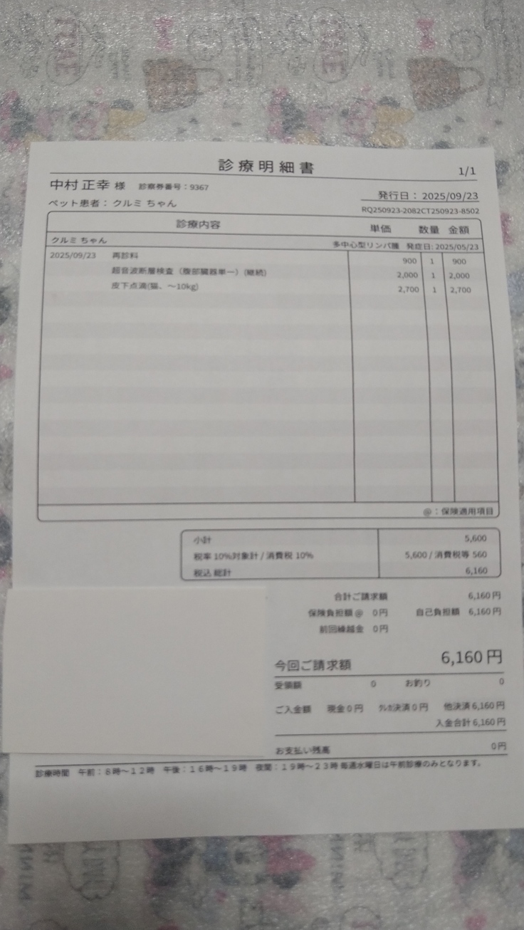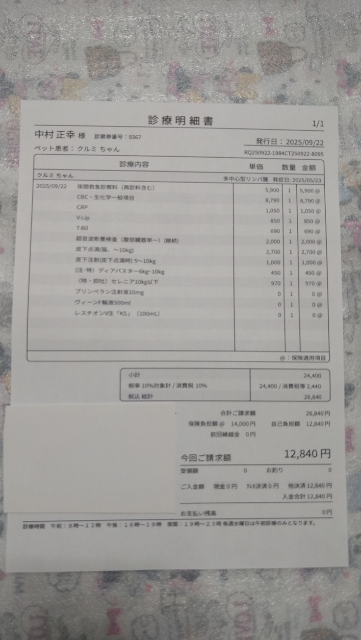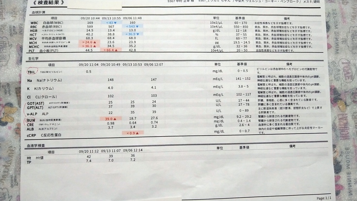 9月23日、診察してもらいに病院に行き見てもらったところ、少し改善されてきたとのことで点滴をしてもらい帰宅できました!