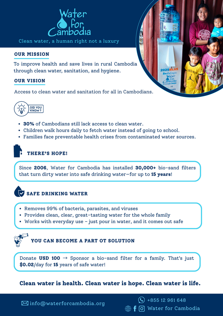 プロジェクトはまだ道半ばですが、挑戦して本当によかったと感じています。カンボジアに浄水器を届けるという目的だけでなく、クラウドファンディングを通して、「支援される」ということの意味を日々実感することができました。一人、また一人と支援してくださる方が増えるたびに、不安は勇気に変わり、支援は責任へと変わっていきました。まるで、僕一人が50人のチームになっていくような感覚でした。このプロジェクトは、もう「僕のプロジェクト」ではなく、「みんなのプロジェクト」だと思っています。現地では、浄水器の製作や砂の洗浄、設置作業、そして設置後の村の方々の声を、僕が代表して届けてきます。